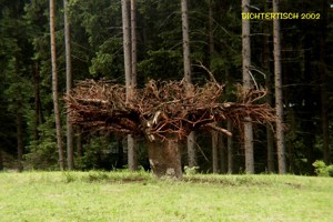 umgekehrt in eine Wiese versetzt. Der Dichtertisch des