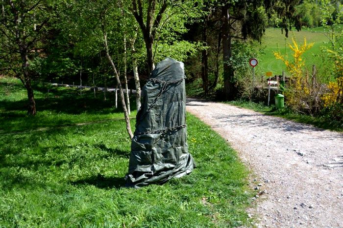 auf das Schwerste. Als Protest verhüllen und fesseln wir mit
