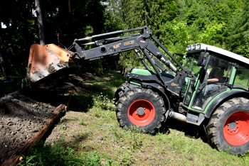 inzwischen verstorbene Förster des Silberwaldes Ing. Michael Tendel eine riesige Wurzel angeliefert und Armin sie dann