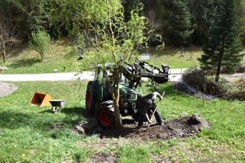 Versetzen ist gelungen, der Baum hat überlebt. Allerdings mußte er jeden Tag händisch